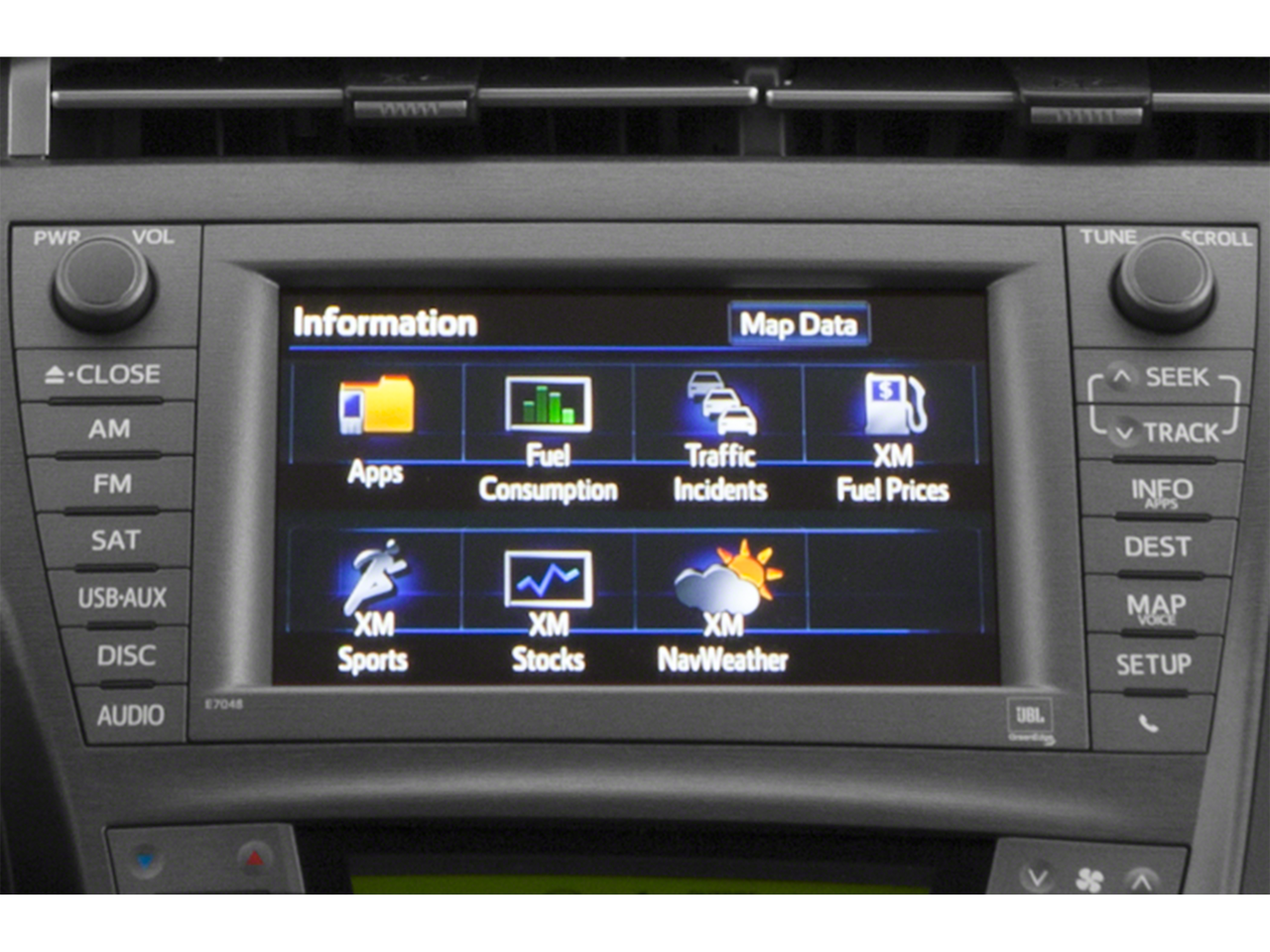 - Radio: AM/FM/CD Player w/Premium HDD Navigation -inc: display audio, 7" high-resolution touchscreen w/split-screen capability, 8 JBL GreenEdge speakers, SiriusXM Radio w/90-day All Access trial, HD Radio, auxiliary audio jack, USB port, vehicle information, hands-free phone capability, advanced voice recognition, and music streaming via Bluetooth® wireless technology, Entune App Suite includes Bing, iHeartRadio, MovieTickets.com, OpenTable and Pandora; SXM Data Services including NavTraffic, NavWeather, Fuel, and Sports & Stocks; Entune Plug-in Hybrid Applications include Charge Management, Remote Climate, Vehicle Finder, Charging Station Map and ECO Dashboard Access to SXM Data Services (Stocks/Sports/Fuel Prices/Weather/Traffic) and Plug-in Hybrid Applications is complimentary for three years. Access to all other Entune App Suite services is subscription-free. Users will have the ability to opt-in to various levels of services. See toyota.com/entune for details.
